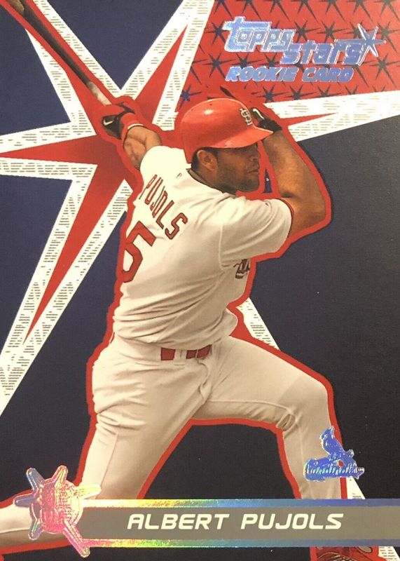 The Albert Pujols 2001 Topps Stars #198 Base Rookie card in Raw condition has moved up $6.01 (+25.1%) in the last 30 days and was last sold for $30.00 .