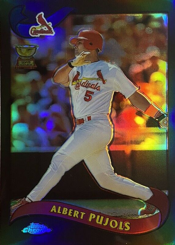 This card is 1 of 3 Albert Pujols' card variations in the 2002 Topps Chrome set being tracked by Sports Card Investor, including Base, and Gold Refractor.