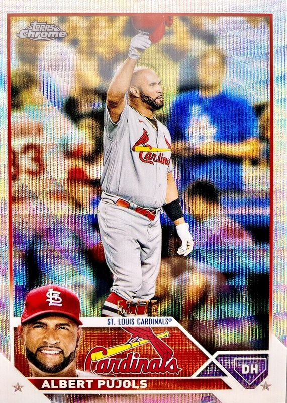 This card is 1 of 34 Albert Pujols' card variations in the 2023 Topps Chrome set being tracked by Sports Card Investor, including Negative Refractor, Pink Refractor, Prism Refractor, Refractor, and Sepia Refractor.