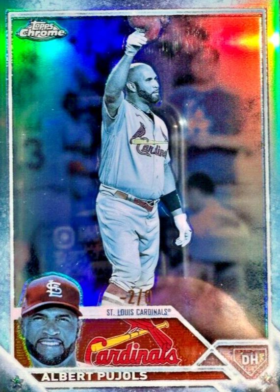 This card is 1 of 34 Albert Pujols' card variations in the 2023 Topps Chrome set being tracked by Sports Card Investor, including Negative Refractor, Pink Refractor, Prism Refractor, Refractor, and Sepia Refractor.