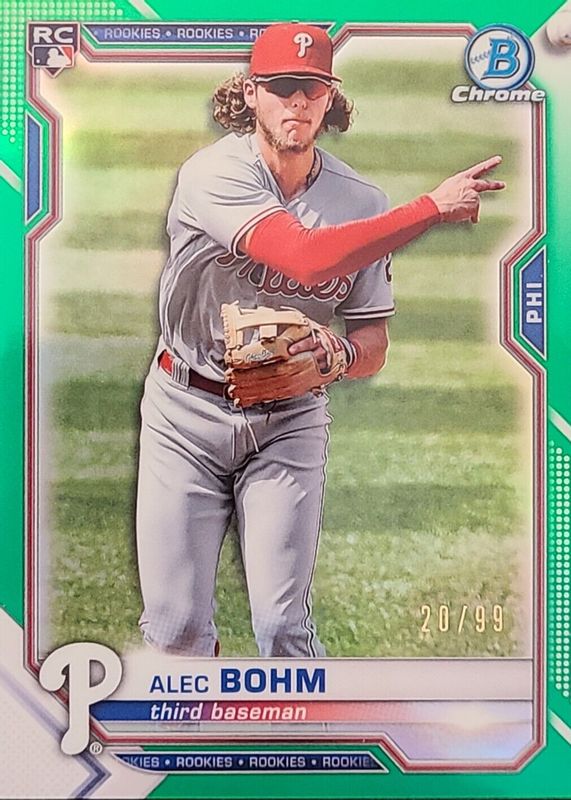 2021 Bowman Chrome ALEC BOHM Rookie #94 GREEN REFRACTOR #27/99 Phillies RC SP