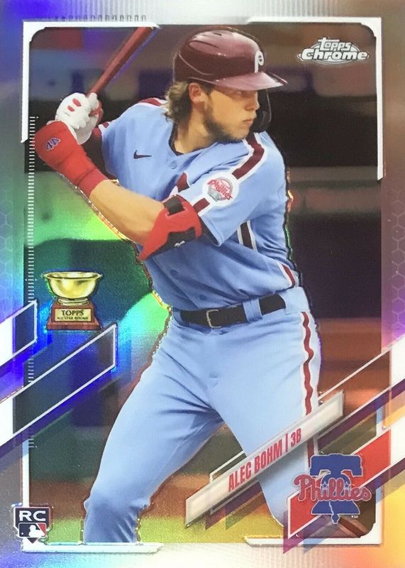 This card is 1 of 24 Alec Bohm's card variations in the 2021 Topps Chrome set being tracked by Sports Card Investor, including Base, Negative Refractor, Pink Refractor, Prism Refractor, and Sepia Refractor.