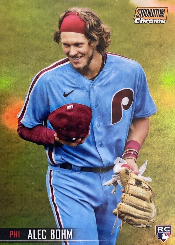 This card is 1 of 18 Alec Bohm's card variations in the 2021 Topps Stadium Club set being tracked by Sports Card Investor, including Base, Image Variation /SP, Black Foil, Black & White, and Chrome.