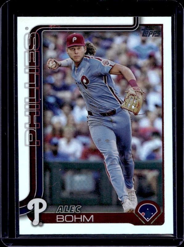 The Alec Bohm 2025 Topps #7 Base card is 1 of 110 Alec Bohm's card variations in the 2025 Topps set being tracked by Sports Card Investor, including Aqua Holo Foil, Diamante Foil, Holo Foil, Pink Diamante Foil, and Pink Holo Foil.