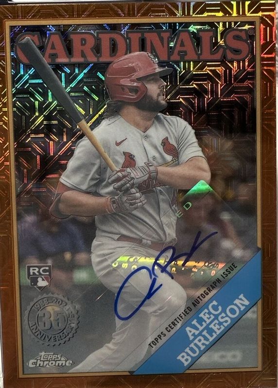 Auctions Ending Soon for Alec Burleson 2023 Topps Silver Pack #2T88C-80 1988 Chrome Promo Autographs - Orange Refractor (Series 2) /25 Rookie RAW