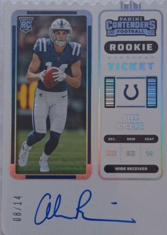 Best Prices Available For Sale of Alec Pierce 2022 Contenders #103 Rookie Ticket Auto - Ticket Stub (/14)