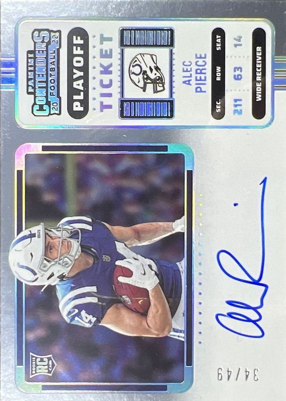 2022 Contenders Alec Pierce Variation Playoff Ticket RC Auto #13/49 Colts