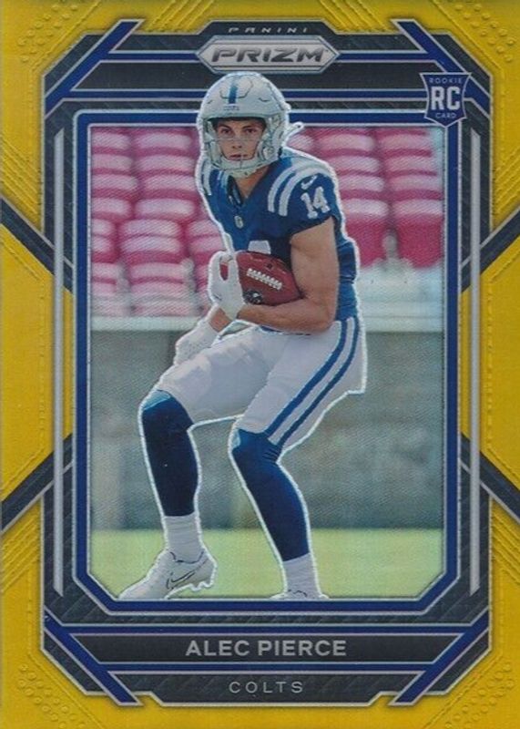 This card is 1 of 81 Alec Pierce's card variations in the 2022 Prizm set being tracked by Sports Card Investor, including Base, Green, Green Ice, Light Blue, and No Huddle.