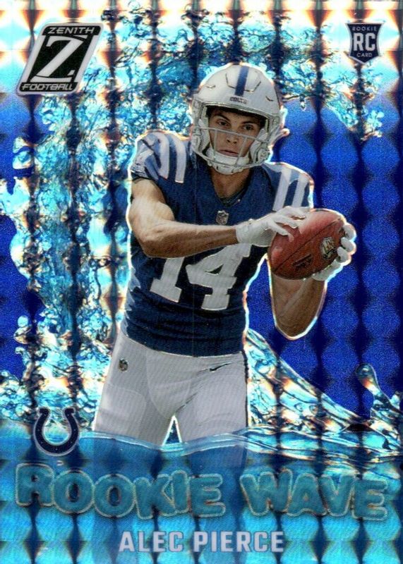 The Alec Pierce 2022 Zenith #RW-AP Rookie Wave - Blue card in Raw condition has not changed in price in the last 30 days and was last sold for $3.00 .