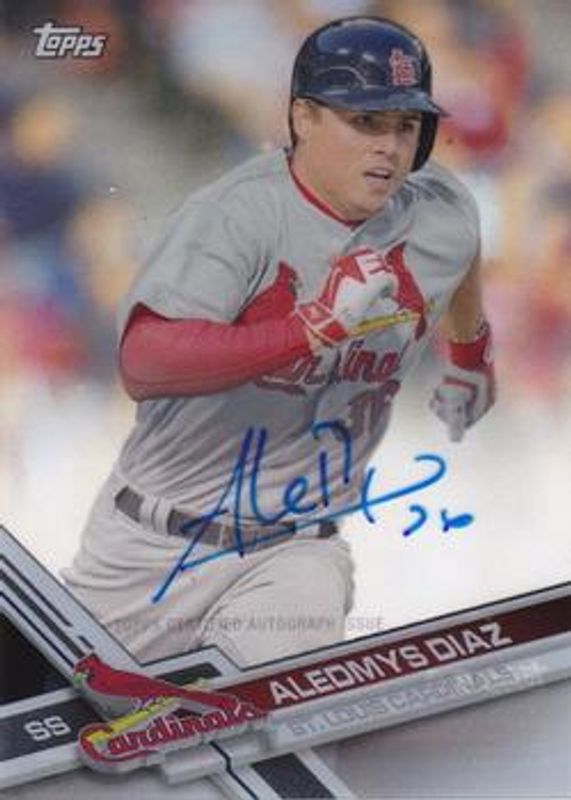 The Aledmys Diaz 2017 Clearly Authentic #CAAU-AD Base card is 1 of 5 Aledmys Diaz's card variations in the 2017 Clearly Authentic set being tracked by Sports Card Investor, including Green /99, Red /50, Blue /25, and Gold /1.