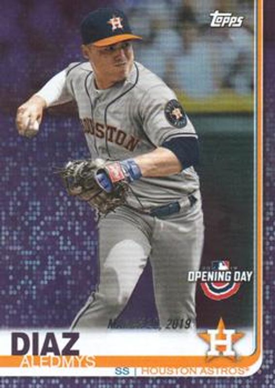 The Aledmys Diaz 2019 Topps Opening Day #156 Purple card is 1 of 11 Aledmys Diaz's card variations in the 2019 Topps Opening Day set being tracked by Sports Card Investor, including Base, Red, 5x7 /49, 5x7 Gold /10, and Opening Day 1 of 1 /1.