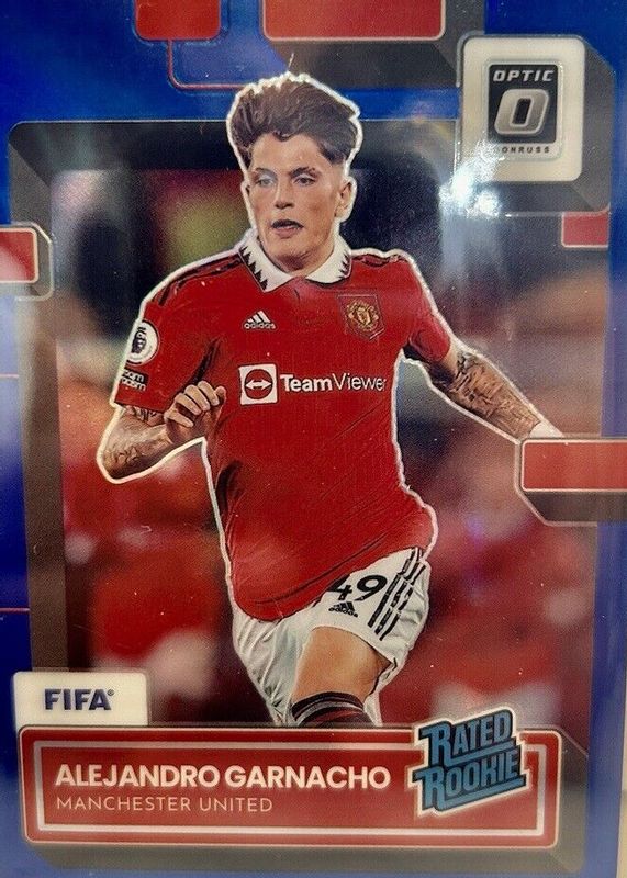 2022-23 Panini Donruss Optic Alejandro Garnacho 64/99 Blue Prizm Rated Rookie RC