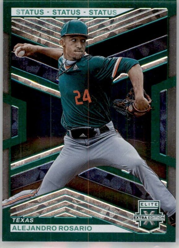 The Alejandro Rosario 2023 Elite Extra Edition #137 Status Green /499 card is 1 of 39 Alejandro Rosario's card variations in the 2023 Elite Extra Edition set being tracked by Sports Card Investor, including Base, Pink, Signatures, Signatures die-cut /399, and Aspirations Blue /349.