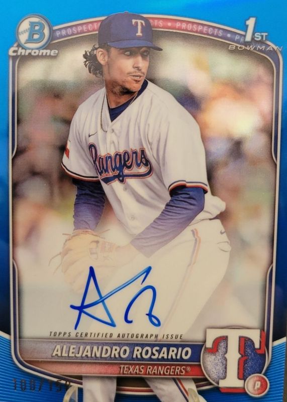 Alejandro Rosario 2025 Bowman Chrome 1st True Blue Refractor Auto /150 Rangers