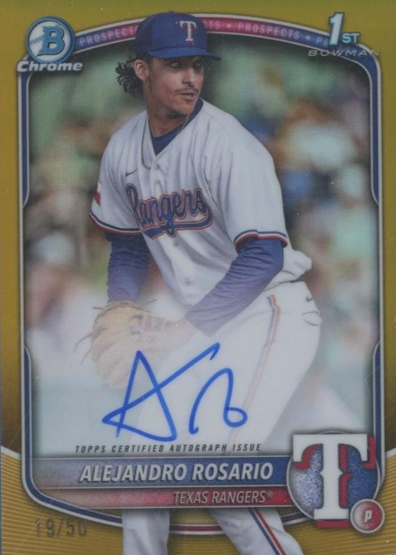 2025 Bowman Chrome Alejandro Rosario 1st Gold Refractor Auto /50 Rangers v1036
