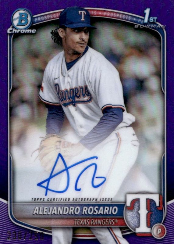 Alejandro Rosario 2025 Bowman Chrome 1st True Purple Refractor Auto /250 Rangers
