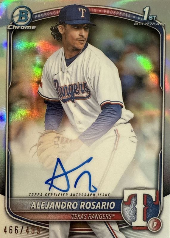 2025 Bowman Chrome Alejandro Rosario 1st Refractor Auto /499 Rangers