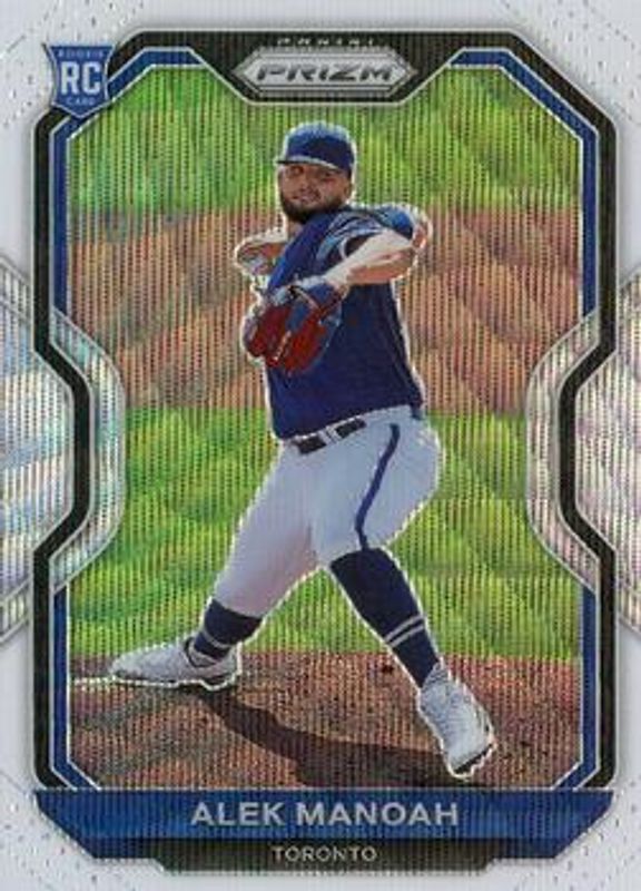 The Alek Manoah 2021 Prizm #94 White Wave Rookie card is 1 of 43 Alek Manoah's card variations in the 2021 Prizm set being tracked by Sports Card Investor, including Base, Blue, Blue Velocity, Carolina Blue, and Cosmic Haze.