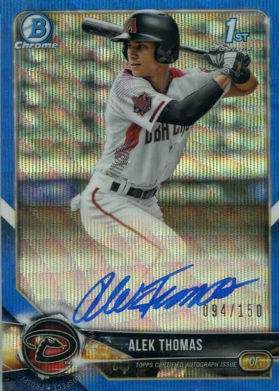 Alek Thomas 2018 Bowman Chrome Draft Blue Wave Refractor Auto /150 Diamondbacks