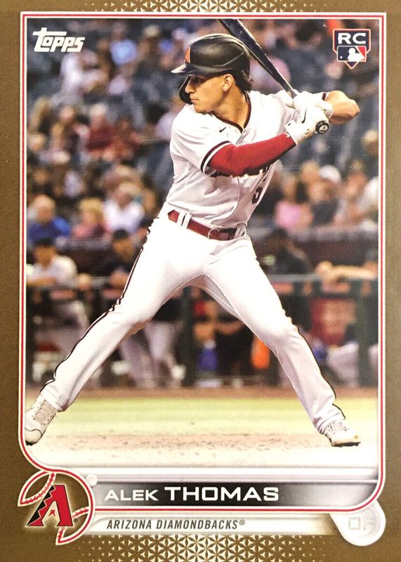 The Alek Thomas 2022 Topps Update #US212 Gold /2022 Rookie card in Raw condition has moved down -$0.99 (-24.8%) in the last 30 days and was last sold for $3.00 .