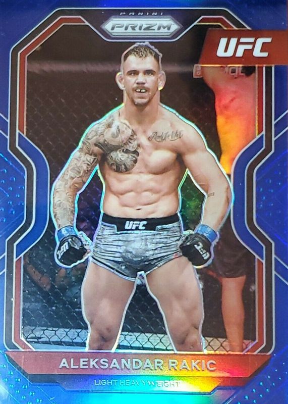 The Aleksandar Rakic 2021 Prizm UFC #16 Blue /199 card in Raw condition has not changed in price in the last 30 days and was last sold for $3.25 .