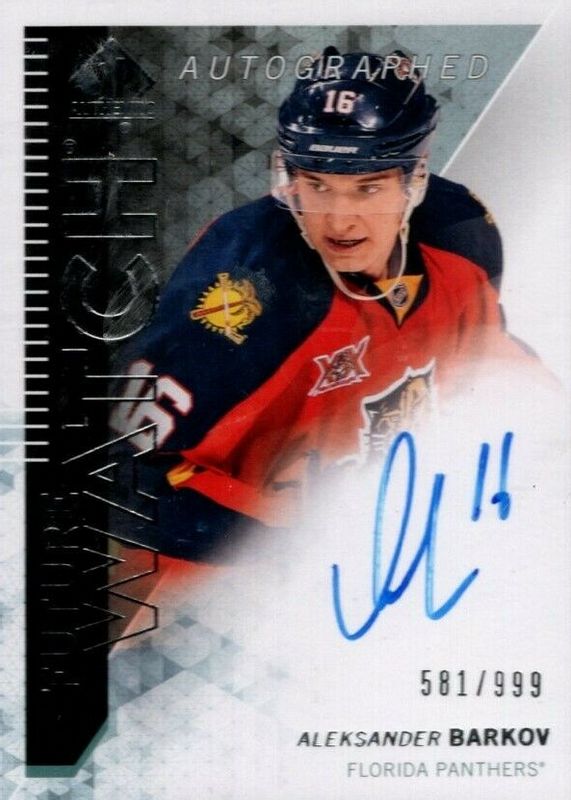The Aleksander Barkov 2013 SP Authentic #316 Future Watch Auto /999 Rookie card in Raw condition has moved up $36.50 (+24.6%) in the last 30 days and was last sold for $185.00 .