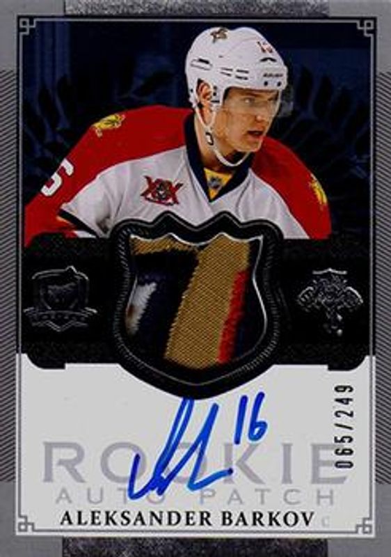 The Aleksander Barkov 2013 Upper Deck The Cup #170 Base /249 Rookie card is 1 of 63 Aleksander Barkov's card variations in the 2013 Upper Deck The Cup set being tracked by Sports Card Investor, including Gold Rookie Autographed Patch /58, Gold Rainbow /25, Gold /14, Black Laundry Tags /3, and Black Rookie Auto Tag /3.