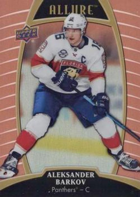 The Aleksander Barkov 2019 Upper Deck Allure #7 Sunset card is 1 of 27 Aleksander Barkov's card variations in the 2019 Upper Deck Allure set being tracked by Sports Card Investor, including Base, Pewter, Red Rainbow, White Rainbow, and Yellow Taxi.