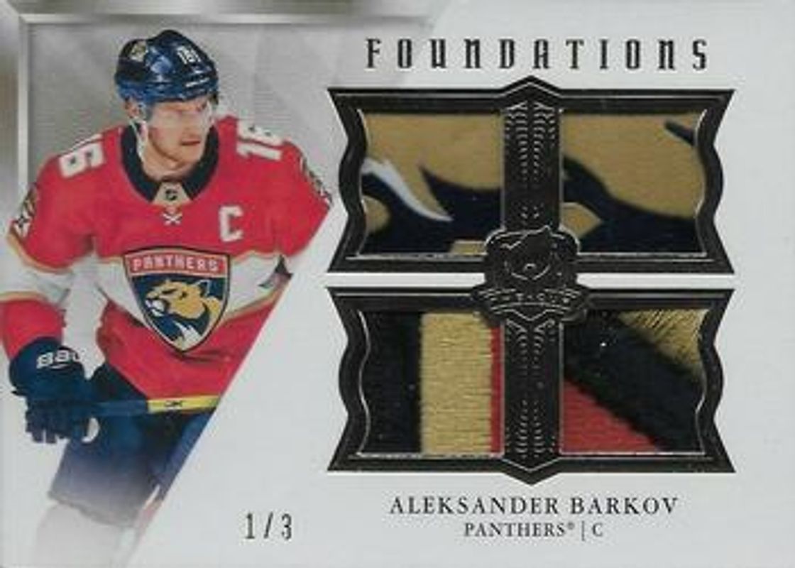 The Aleksander Barkov 2019 Upper Deck The Cup #F-AB Foundations Patch /3 card is 1 of 34 Aleksander Barkov's card variations in the 2019 Upper Deck The Cup set being tracked by Sports Card Investor, including Base /249, Enshrinements /99, Signatures Materials /99, Foundations Jersey /49, and Splendor /36.