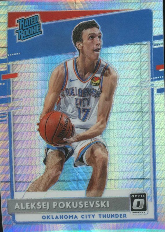 The Aleksej Pokusevski 2020 Optic #167 Lucky Envelopes /8 Rookie card in Raw condition has not changed in price in the last 30 days and was last sold for $122.50 .