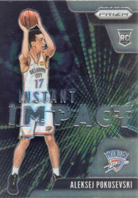 The Aleksej Pokusevski 2020 Prizm #4 Instant Impact Rookie card is 1 of 76 Aleksej Pokusevski's card variations in the 2020 Prizm set being tracked by Sports Card Investor, including Base, Choice Blue Yellow Green, Fast Break, Green, and Green Ice.