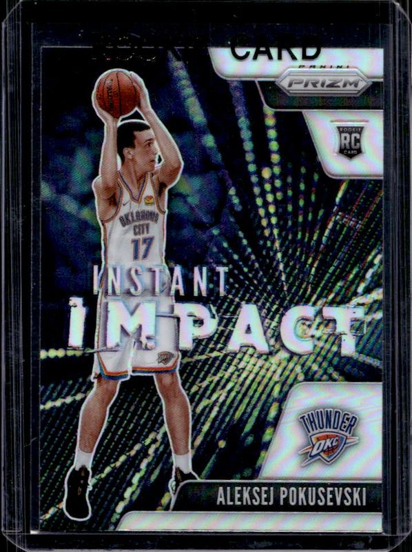 The Aleksej Pokusevski 2020 Prizm #4 Instant Impact - Silver Rookie card is 1 of 76 Aleksej Pokusevski's card variations in the 2020 Prizm set being tracked by Sports Card Investor, including Base, Choice Blue Yellow Green, Fast Break, Green, and Green Ice.