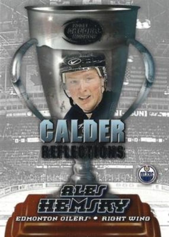 The Ales Hemsky 2002 Pacific Calder #10 Reflections Rookie card is 1 of 3 Ales Hemsky's card variations in the 2002 Pacific Calder set being tracked by Sports Card Investor, including Base /825, and Silver /299.