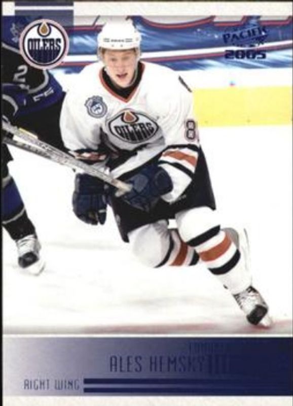 The Ales Hemsky 2004 Pacific #102 Blue /250 card is 1 of 3 Ales Hemsky's card variations in the 2004 Pacific set being tracked by Sports Card Investor, including Base, and Red.