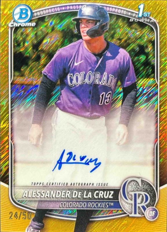 2025 Bowman Chrome Alessander De La Cruz Auto Gold Shimmer Refractor 1st #42/50