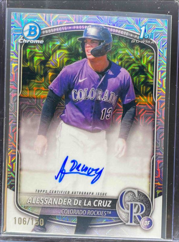 2025 Bowman Chrome ALESSANDER DE LA CRUZ 1ST CHOICE HTA AUTO #/150 Rockies