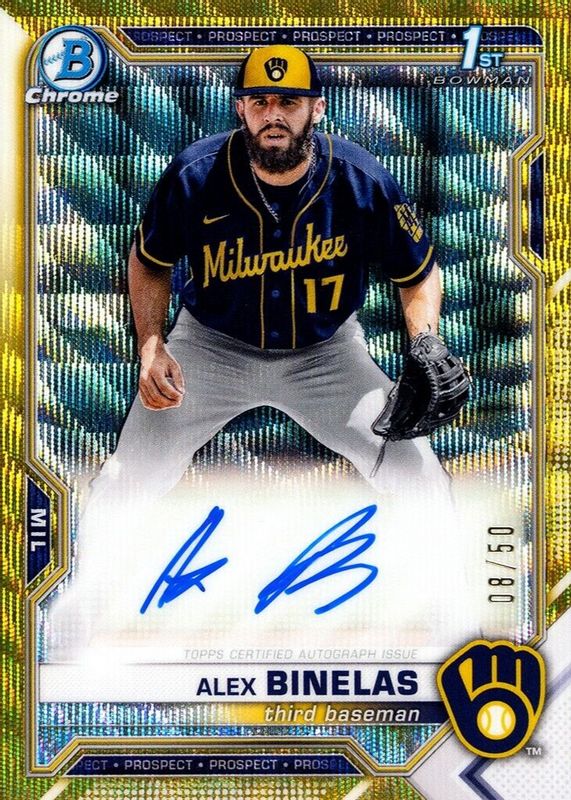 Alex Binelas 2021 Bowman Draft #CDA-AB Chrome DP Auto - Gold Wave Refractor /50 (1st) RAW Price Guide
