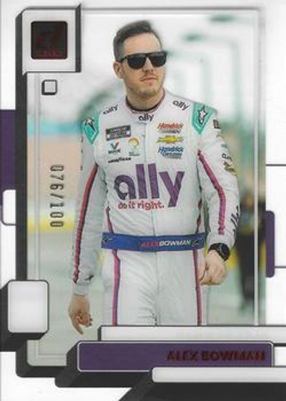 The Alex Bowman 2023 Chronicles NASCAR #12 Clearly Donruss - Red /100 card is 1 of 129 Alex Bowman's card variations in the 2023 Chronicles NASCAR set being tracked by Sports Card Investor, including Classics, Classics Autographs, Clearly Donruss, Clear Vision, and Contenders Optic.