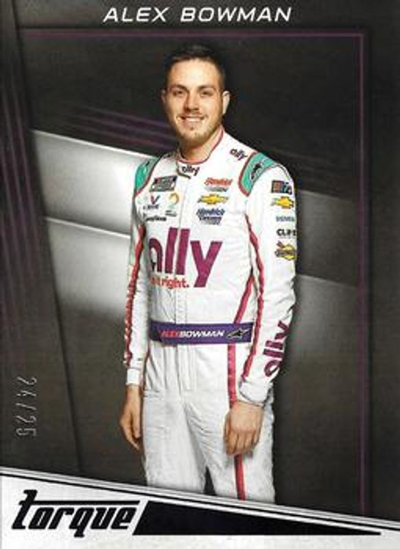 The Alex Bowman 2023 Chronicles NASCAR #13 Torque - Purple /25 card is 1 of 129 Alex Bowman's card variations in the 2023 Chronicles NASCAR set being tracked by Sports Card Investor, including Classics, Classics Autographs, Clearly Donruss, Clear Vision, and Contenders Optic.