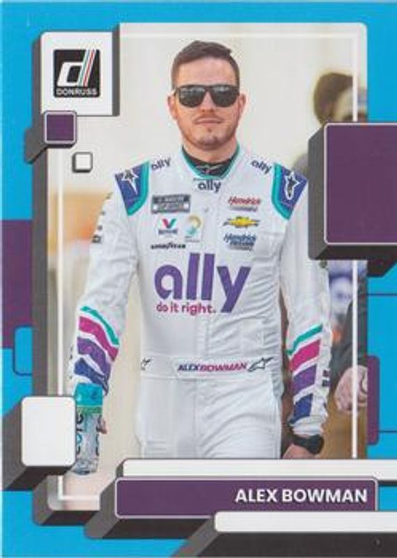 The Alex Bowman 2023 Donruss NASCAR #51 Carolina Blue card is 1 of 109 Alex Bowman's card variations in the 2023 Donruss NASCAR set being tracked by Sports Card Investor, including #136 Base, #51 Base, #13 Base, #13 Carolina Blue, and #136 Carolina Blue.