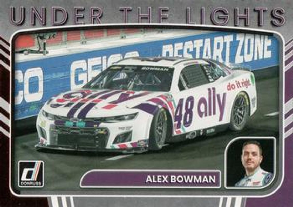 The Alex Bowman 2023 Donruss NASCAR #UL3 Under The Lights Retail card is 1 of 109 Alex Bowman's card variations in the 2023 Donruss NASCAR set being tracked by Sports Card Investor, including #136 Base, #51 Base, #13 Base, #51 Carolina Blue, and #13 Carolina Blue.