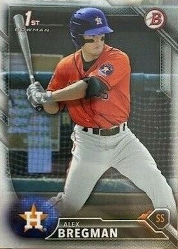 This card is 1 of 14 Alex Bregman's card variations in the 2016 Bowman set being tracked by Sports Card Investor, including Chrome Prospects (1st), Chrome Prospect Auto (1st), Chrome Prospect Auto - Green Shimmer Refractor (1st), Chrome Prospect Auto - Refractor /499 (1st), and Chrome Prospect Auto - Purple Refractor /250 (1st).