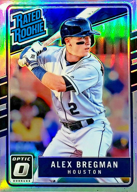 The Alex Bregman 2017 Optic Holo Rookie card in Raw condition has moved up $2.26 (+228%) in the last 30 days and was last sold for $3.25 .