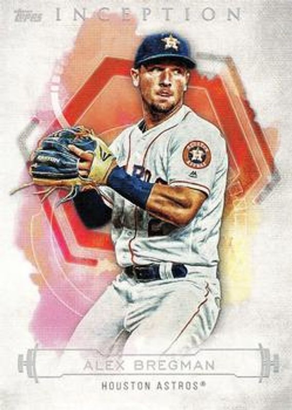 The Alex Bregman 2019 Topps Inception #39 Base card is 1 of 26 Alex Bregman's card variations in the 2019 Topps Inception set being tracked by Sports Card Investor, including Green, Purple /150, Magenta /99, Red /75, and Orange /50.