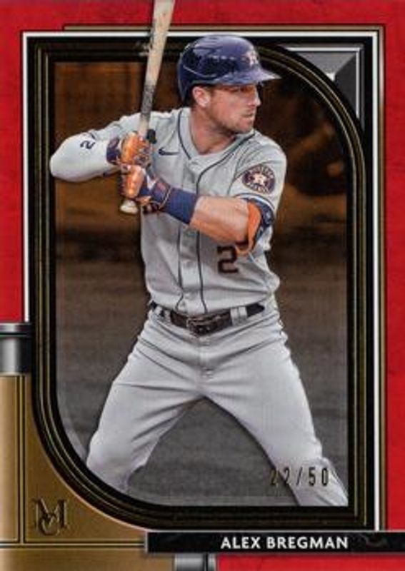 The Alex Bregman 2021 Topps Museum Collection #4 Ruby /50 card is 1 of 19 Alex Bregman's card variations in the 2021 Topps Museum Collection set being tracked by Sports Card Investor, including Base, Copper, Sapphire /150, Amethyst /99, and Emerald /1.