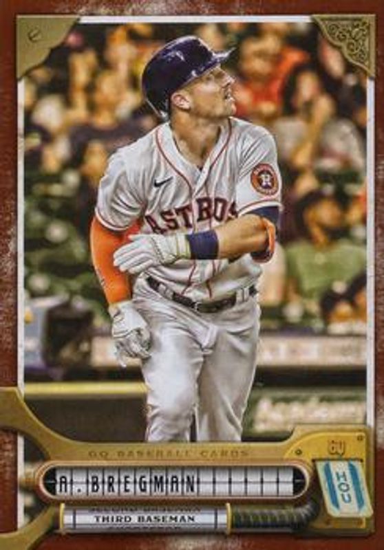 The Alex Bregman 2022 Topps Gypsy Queen #178 Burnt Umber /399 card is 1 of 24 Alex Bregman's card variations in the 2022 Topps Gypsy Queen set being tracked by Sports Card Investor, including Base, Chrome, Green, Missing Black Plate, and Missing Nameplate.