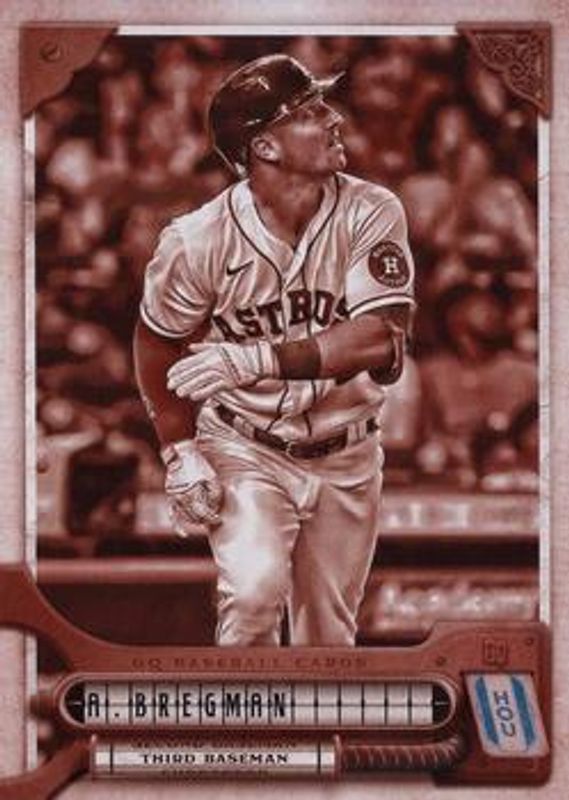 The Alex Bregman 2022 Topps Gypsy Queen #178 Sepia /99 card is 1 of 24 Alex Bregman's card variations in the 2022 Topps Gypsy Queen set being tracked by Sports Card Investor, including Base, Chrome, Green, Missing Black Plate, and Missing Nameplate.