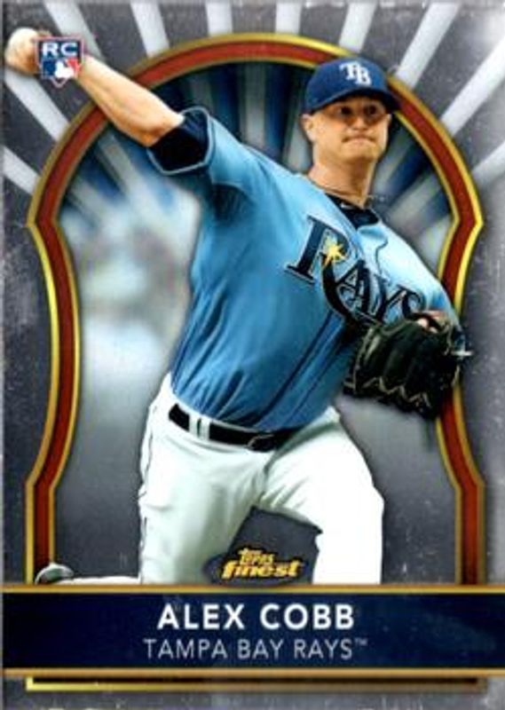 The Alex Cobb 2011 Topps Finest #81 Base card is 1 of 30 Alex Cobb's card variations in the 2011 Topps Finest set being tracked by Sports Card Investor, including Refractor /549, X-Fractor /299, Green Refractor /199, Orange Refractor /99, and Gold Refractor /50.