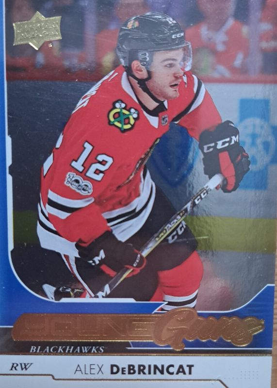 The Alex DeBrincat 2017 Upper Deck #221 Young Guns - Silver Foil Rookie card in Raw condition has not changed in price in the last 30 days and was last sold for $70.31 .