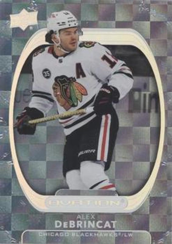 The Alex DeBrincat 2021 Upper Deck Ovation #42 Checkerboard card is 1 of 13 Alex DeBrincat's card variations in the 2021 Upper Deck Ovation set being tracked by Sports Card Investor, including Base, Gold Circular Wonder, Gold Foil, Silver Foil, and Standing Ovation /500.